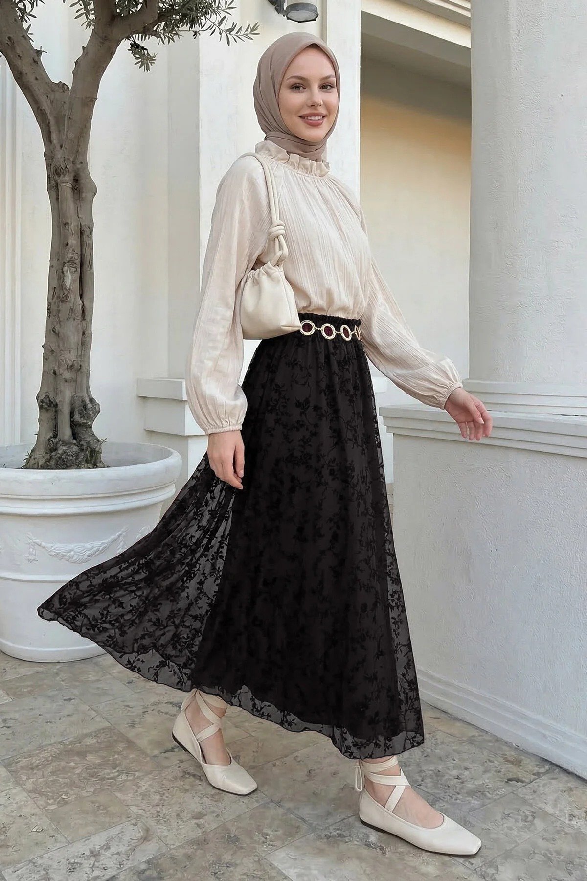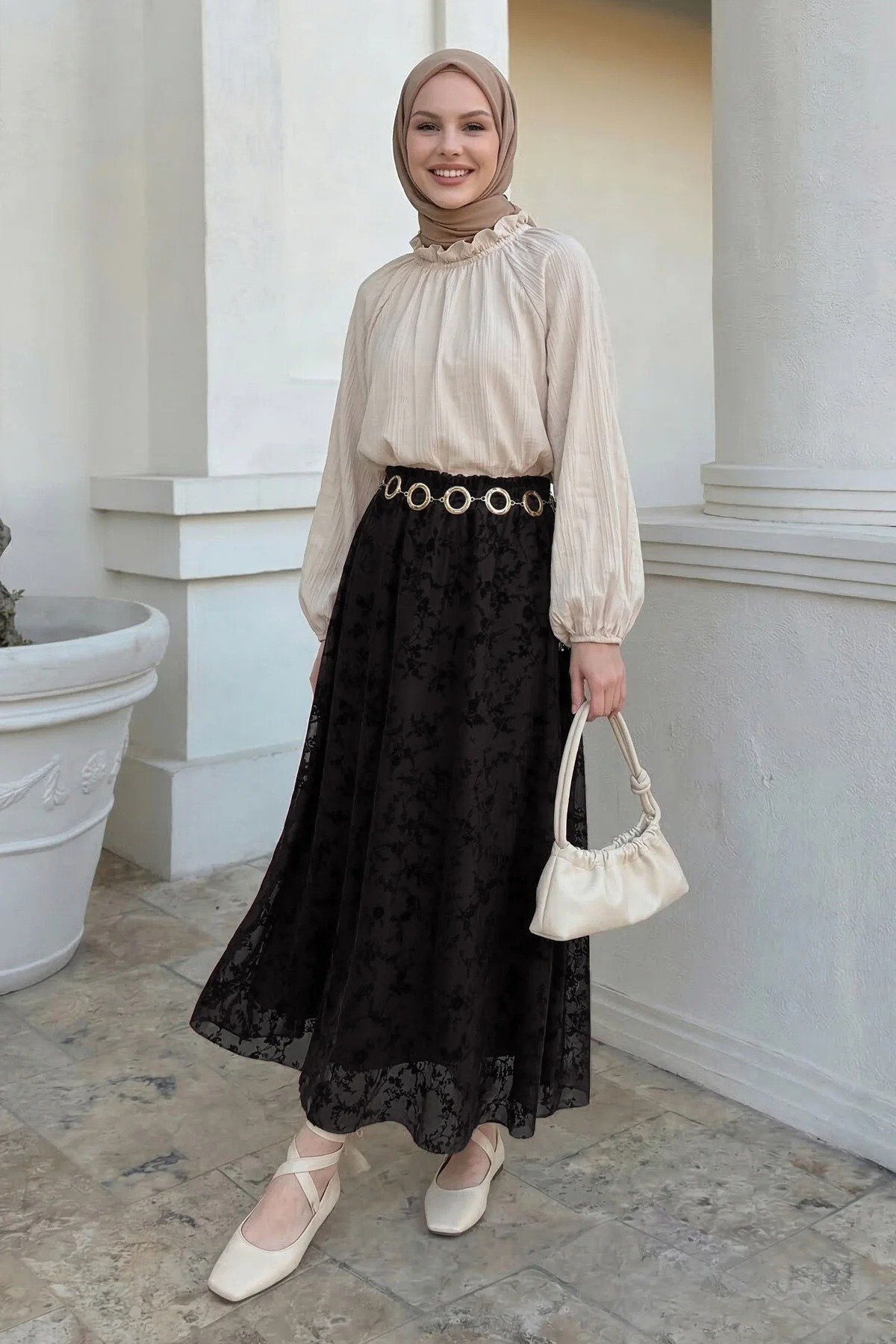 HARMAN BUTİK Women's Beige Ayrobin with Lace Detail and Wa...
