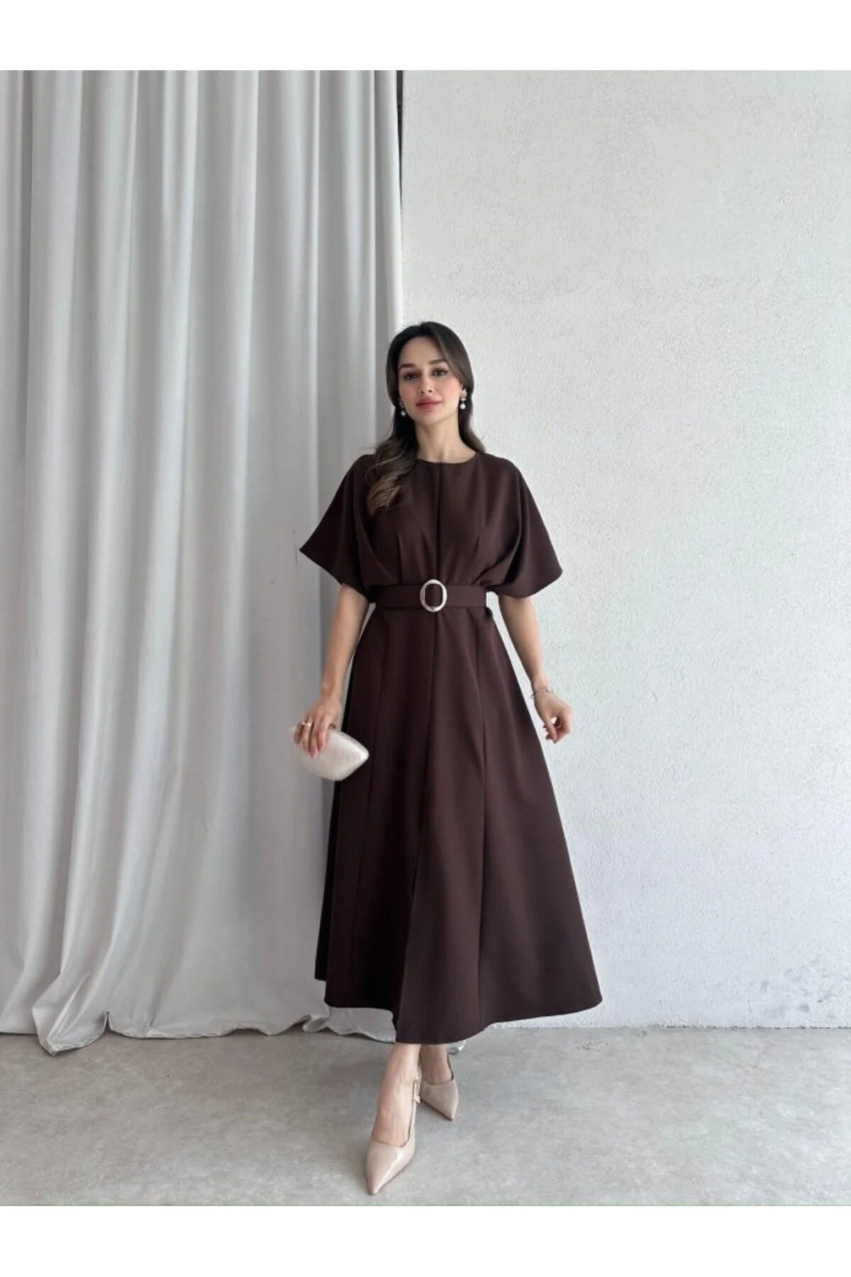MODA DURAĞI HIGH QUALITY MIDI DRESS WITH SLIPPLE DETAIL BELT