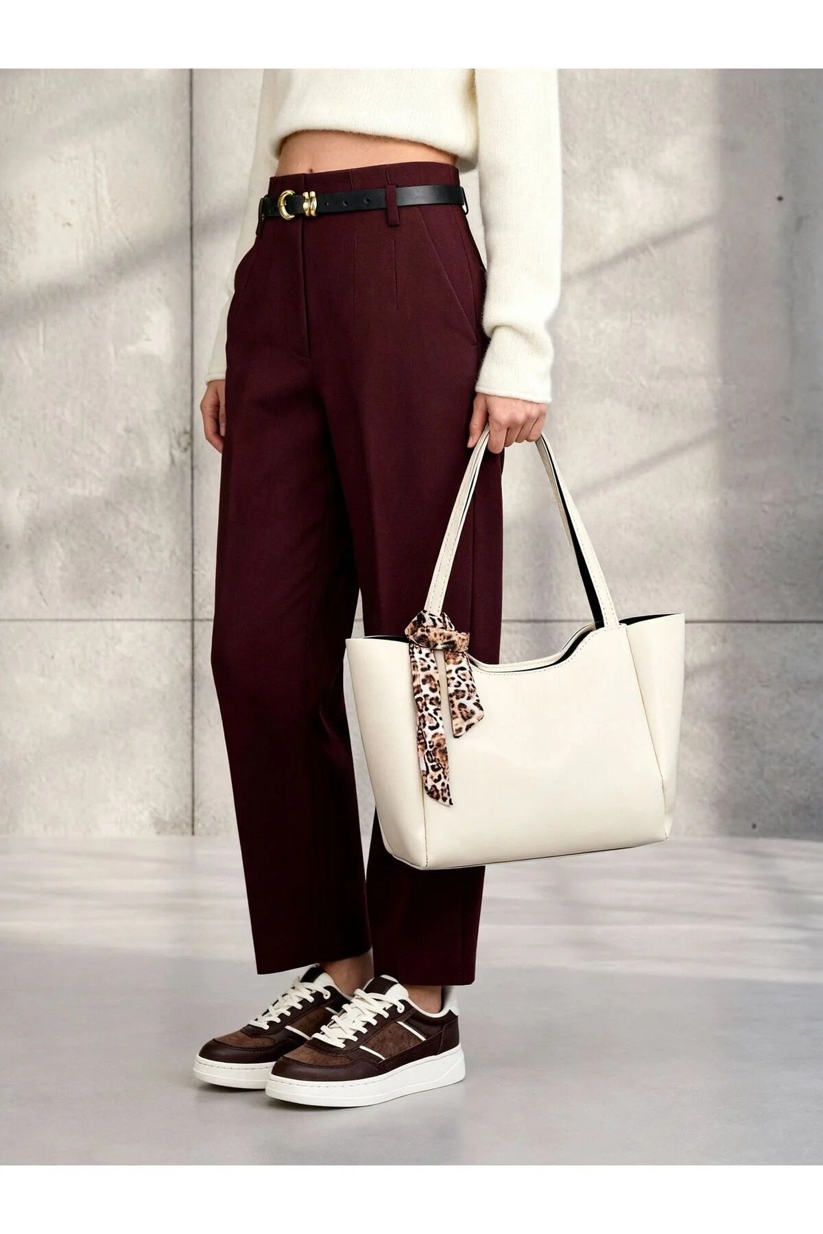 Scarf-style (variable) Zipper and Snap Closure Shopper Hand and Shoulder Bag