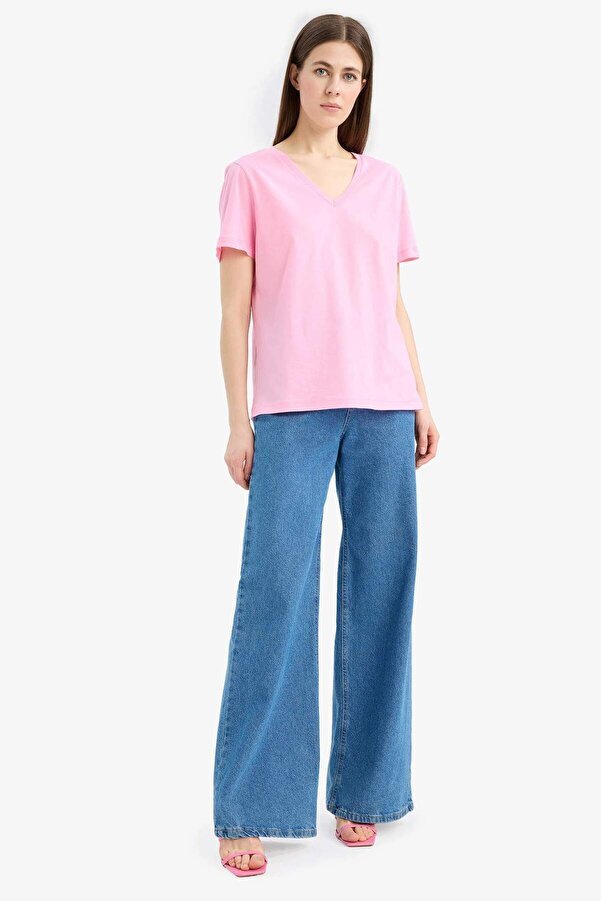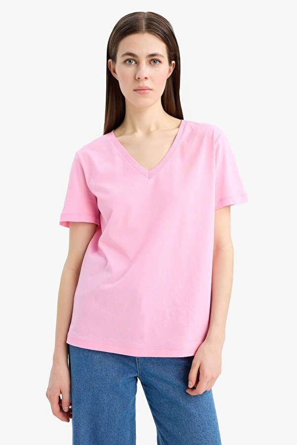 Defacto 100% Cotton Regular Fit V-Neck Basic Plain Short-Sleeve T-Shirt W9578AZ24SM